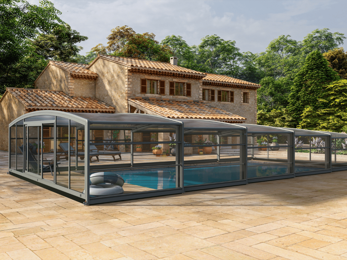 Cet abri de piscine discret au design plat s’intègre parfaitement à l’environnement extérieur. Il protège efficacement le bassin tout en restant bas et élégant. Son système télescopique permet une ouverture aisée, offrant confort, sécurité et performance thermique, tout en conservant une vue dégagée sur le jardin ou la terrasse.